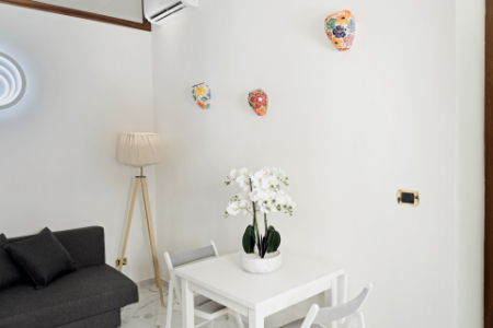 L’appartamento si trova nel centro storico della città, si sviluppa in un unico piano ed è arredato con elementi di design.